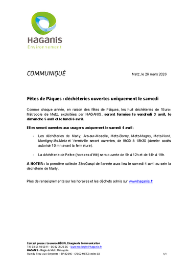 du 04/04 au 23/05HAGANIS : Zéro gaspi Avril / Mai