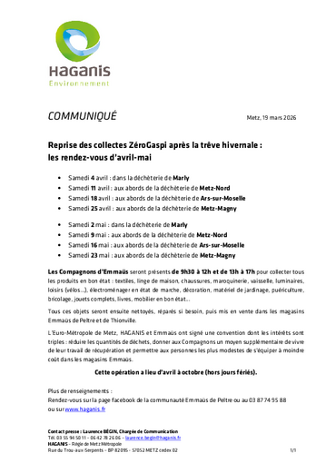 du 04/04 au 23/05HAGANIS : Zéro gaspi Avril / Mai